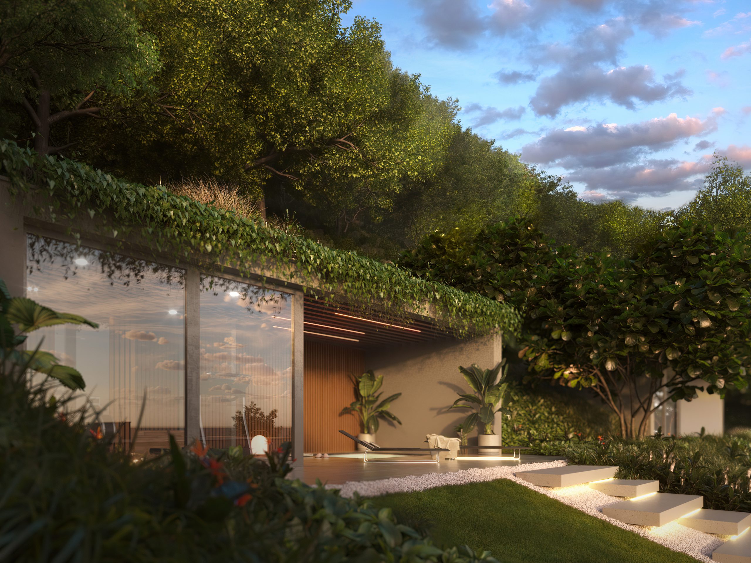 - At the edge of a protected nature reserve, residents have a lush, tree-filled backdrop on the hillside.