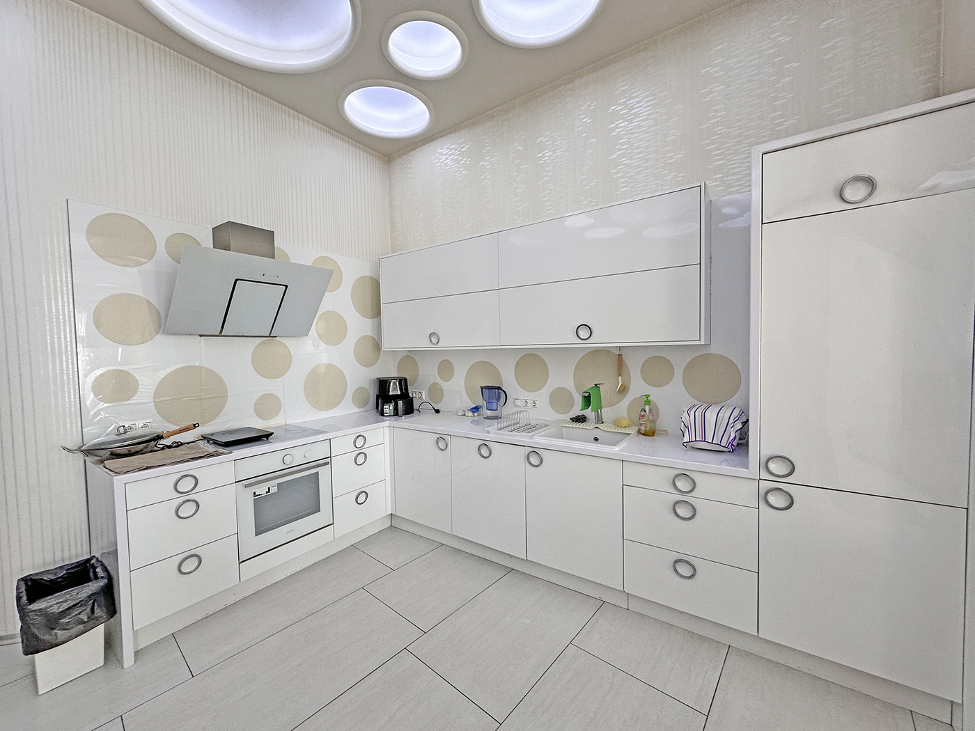 The property has been renovated in a striking contemporary modern style with retro-futuristic elements, creating a unique yet elegant atmosphere. The layout is practical and comfortable: